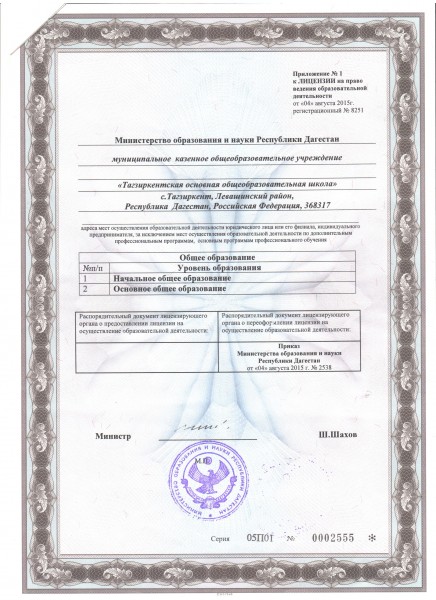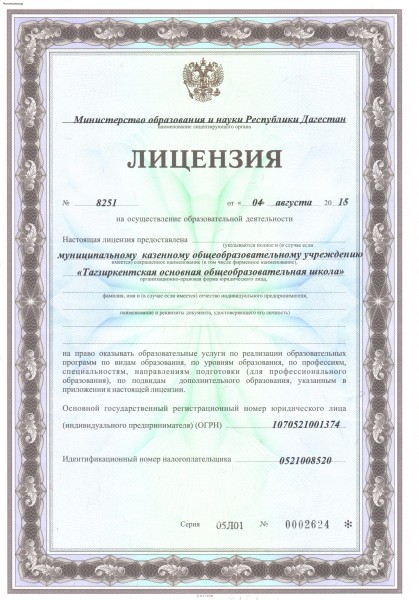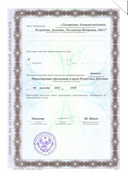 Адрес местонахождения образовательной организации* 368317, Республика Дагестан, Левашинский район, с. Тагзиркент